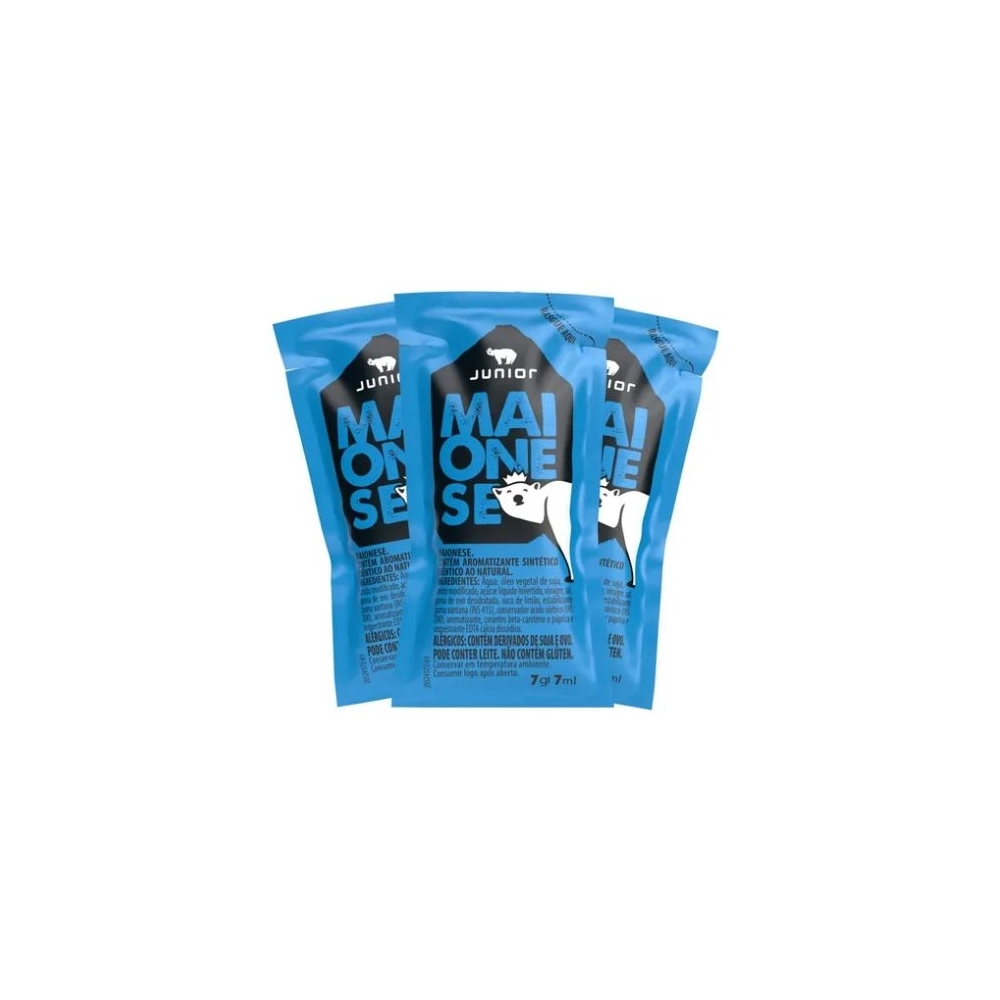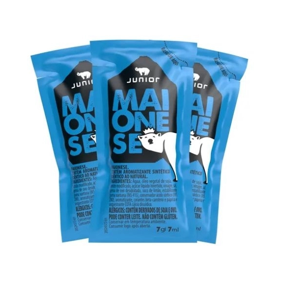 Maionese Sachet 7g JuniorA praticidade em porção individual! Armazenamento:Antes de aberto: Mantenha em local fresco, seco e ao abrigo da luz solar direta. Após aberto: Consuma imediatamente. Por ser uma porção monodose, o sachê não é reciclável após abertura.Validade:12 meses a partir da data de fabricação (indicada na embalagem). Após aberto, descarte as sobras.Dica de Uso: Perfeita para lanches rápidos!Leve na mochila, bolsa ou lancheira para adicionar cremosidade a sanduíches, salgados ou saladas em qualquer lugar. Agite suavemente antes de abrir para homogeneizar a textura.