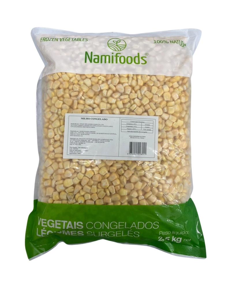Milho congelado Namifoods não contém aditivos, corantes e conservantes. Produto 100% natural, colhidos no melhor tempo, congelados frescos, mantendo preservado seus nutrientes e sabor.